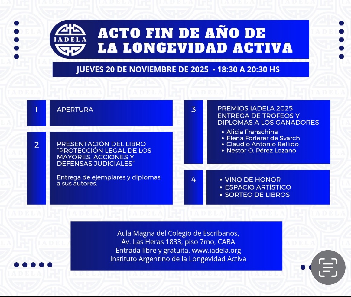 Aula Magna del Colegio de Escribanos Av. Las Heras 1833, piso 7mo., CABA, Buenos Aires, Argentina📣Te invitamos a este Acto Académico para celebrar el fin de año del IADELA. 📅 Jueves 20 de Noviembre de 2025, de 18.30 a 20.30 hs. 📍en el Aula Magna del Colegio de Escribanos: Av. Las Heras 1833, piso 7, CABA. En el mismo vamos a celebrar la presentación de nuestro segundo libro colectivo, entregar […]